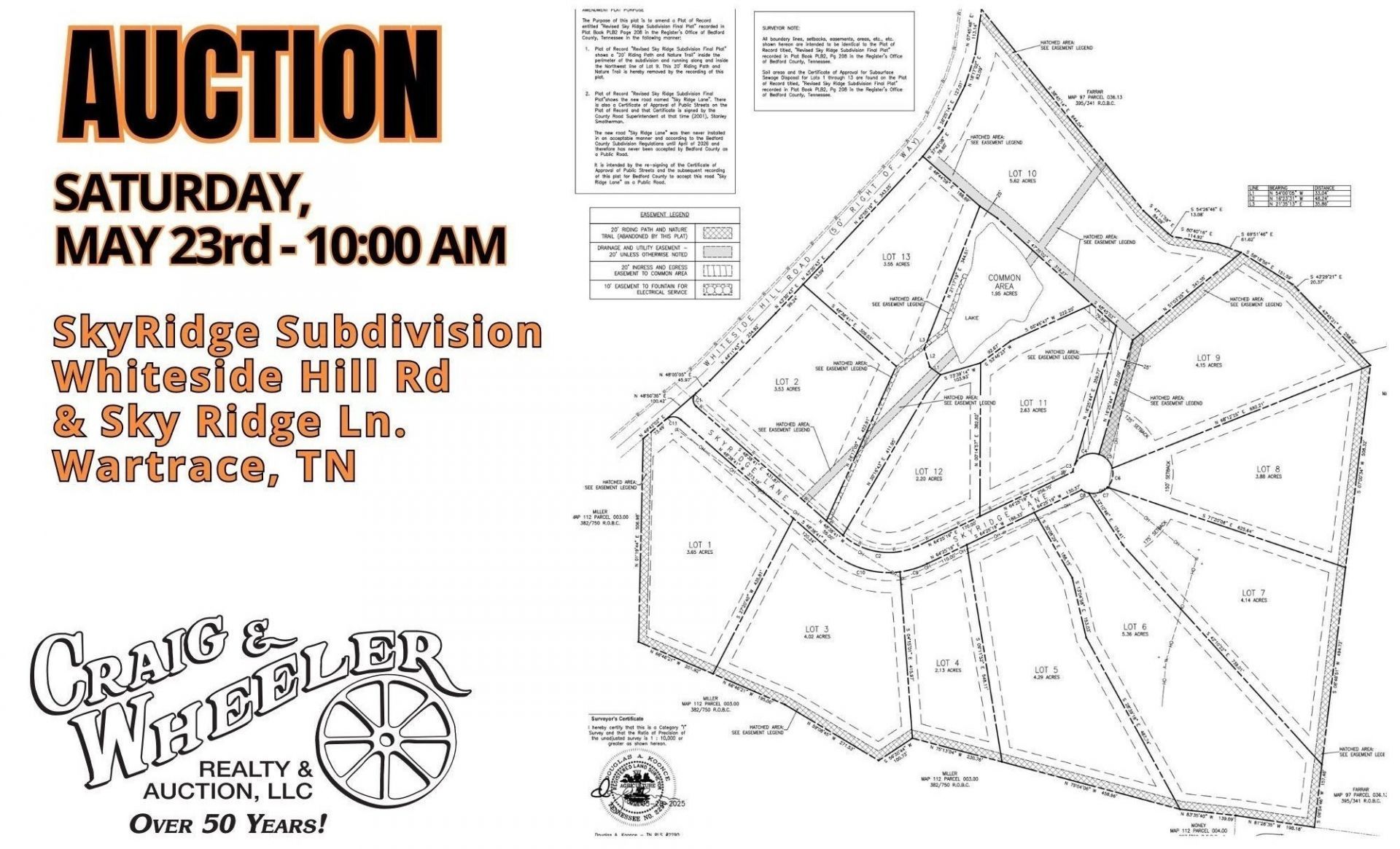 AUCTION! MAY 23rd 10AM Beautiful Development with 'Build-Ready Tracts! Rare Find in a pristine setting and area of Bedford County. Easy Access to Highway 41-A ! TERMS: 10% CASH OR APPROVED CHECK DAY OF SALE BALANCE WITHIN 30 DAYS. 10% BUYER'S PREMIUM ADDED TO FINAL BID PRICE. RESERVE THE RIGHT TO REGROUP. ANNOUNCEMENTS DAY OF SALE TAKE PRECEDENCE OVER PREVIOUS ADVERTISING.Tract #1: 3.65 ACRES ,Tract #2: 3.53 ACRES ,Tract #3: 4.02 ACRES,Tract #4: 2.13 ACRES,Tract #5: 4.29 ACRES ,Tract #6: 5.36 ACRES,Tract #7: 4.14 ACRES,Tract #8: 3.88 ACRES ,Tract #9: 4.15 ACRES ,Tract #10: 5.62 ACRES ,Tract #11: 2.63 ACRES ,Tract #12: 2.20 ACRES ,Tract #13: 3.55 ACRES NOT ABSOLUTE!