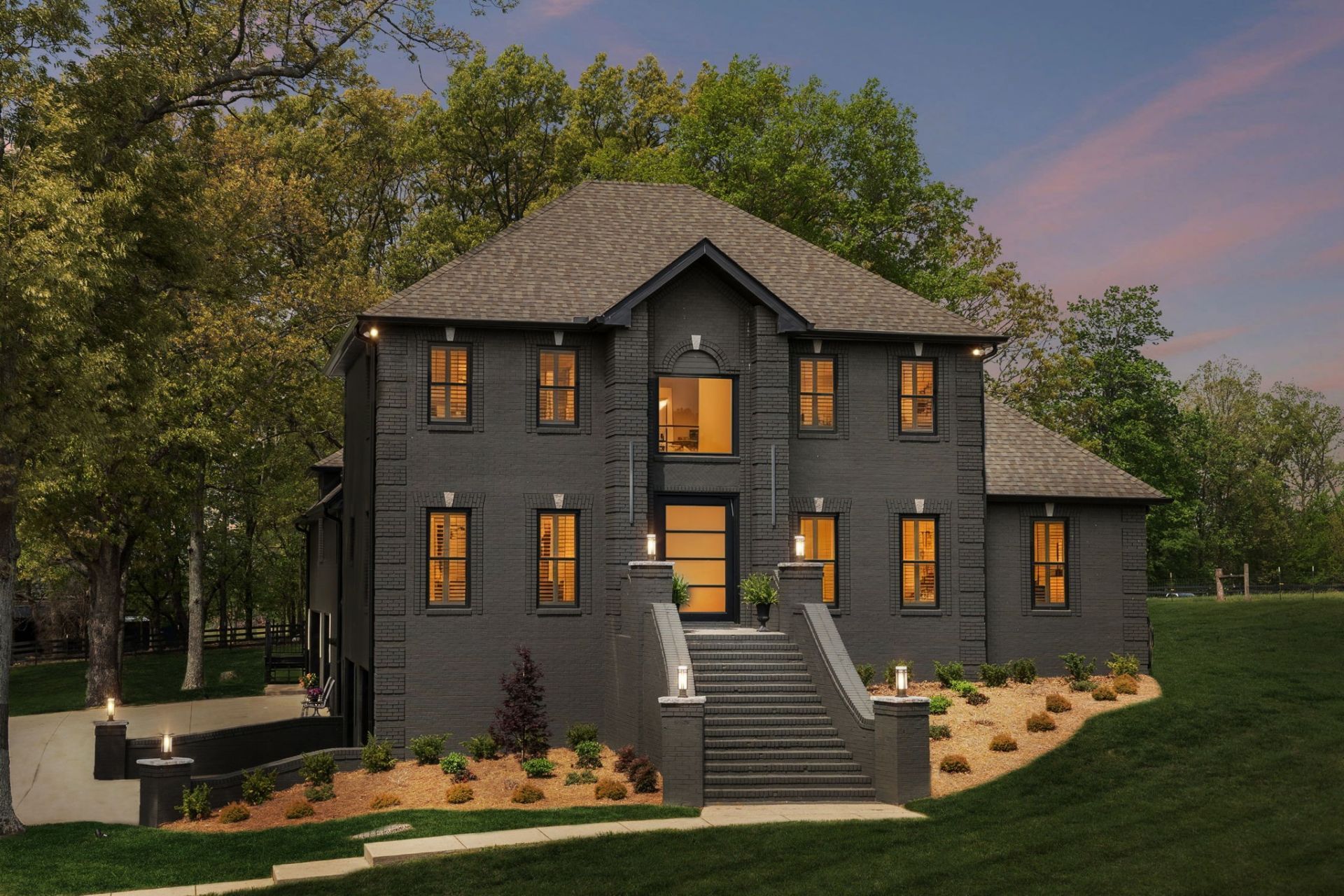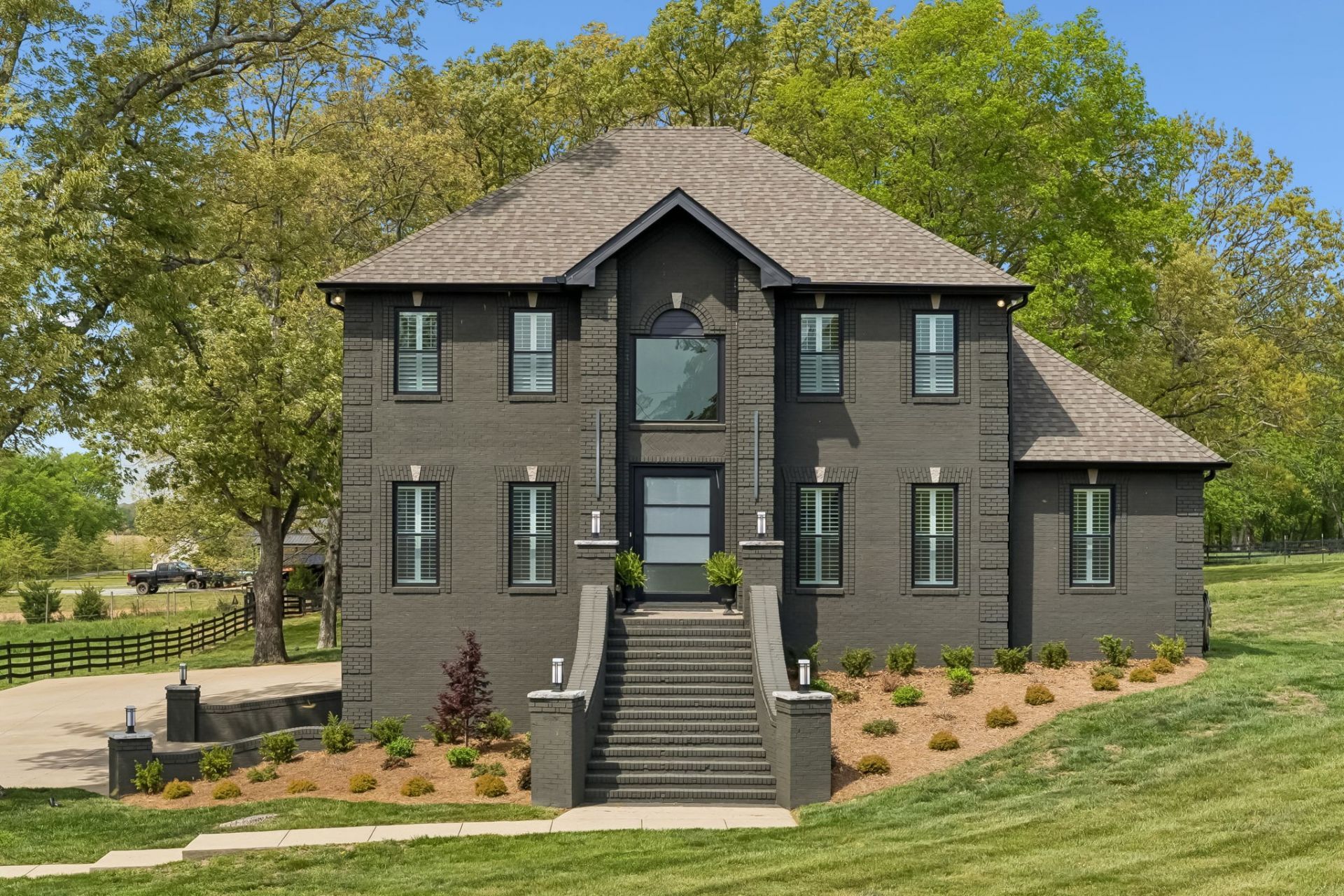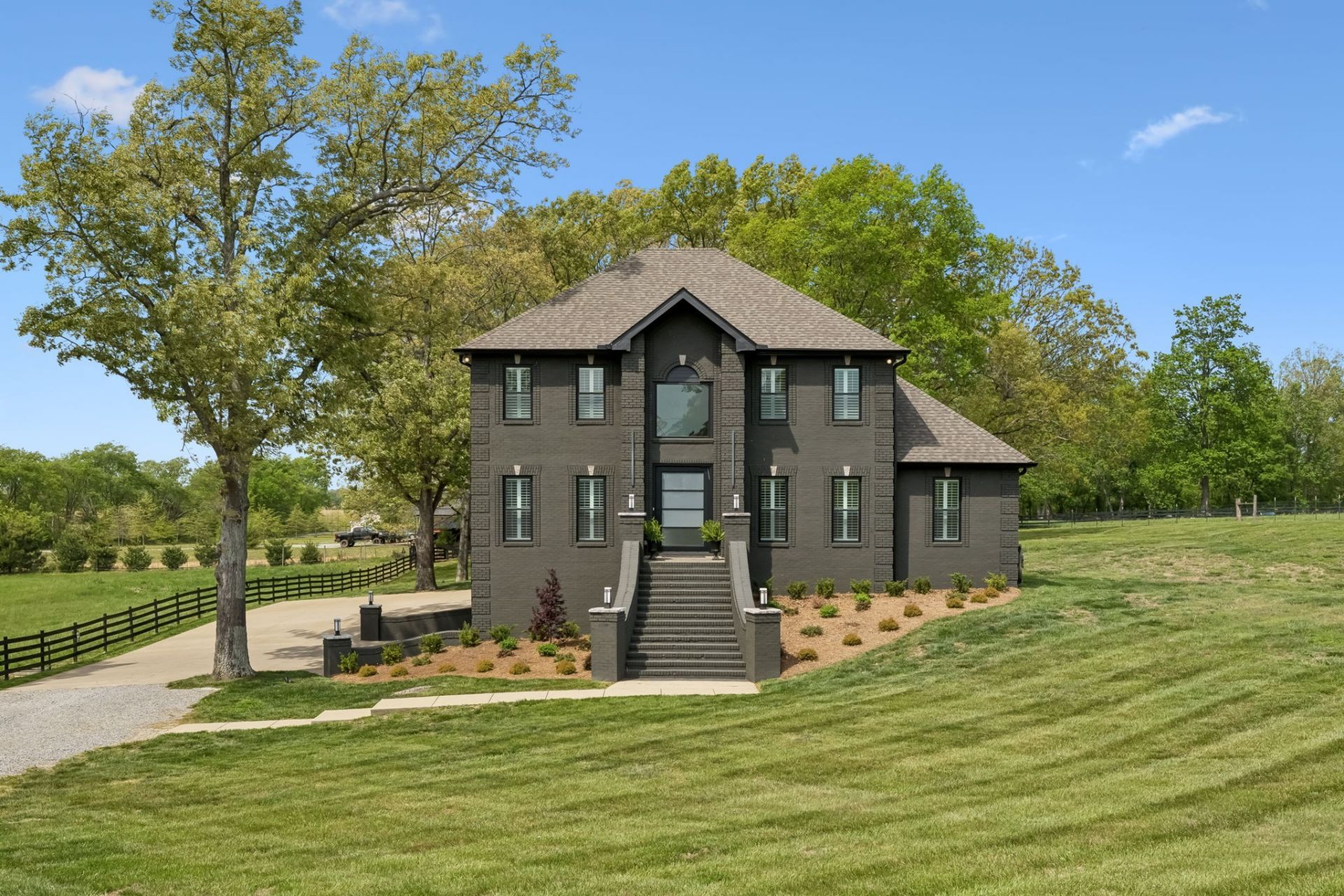 Tucked away on over 26 private acres, this fully renovated estate offers a rare blend of elevated design, thoughtful functionality, and peaceful country living. The setting speaks for itself with rolling pastures, mature trees, plank fencing, and picturesque ponds. Inside, the home has been extensively remodeled with over $400,000 in upgrades. Refinished oak hardwood floors, new windows with plantation shutters, a newer roof, fresh exterior paint, and a striking 5x8 pivot iron front door set the tone throughout.The kitchen is designed for both everyday living and entertaining, featuring custom cabinetry with illuminated glass uppers, granite countertops, dual farmhouse sinks, KitchenAid appliances including a gas range with double ovens, and an oversized peninsula with seating. A room-sized butler's pantry offers extensive cabinetry and prep space. The main living area is open and inviting with finishes and a custom staircase. The main level primary suite offers a spa-inspired bath with marbled tile, dual vanities, a soaking tub, and tiled shower, along with a generous walk-in closet. Upstairs offers a large bonus space with surround sound, wet bar, and access to the deck, along with generously sized bedrooms including a secondary suite and Jack-and-Jill layout.The 5-car garage with workshop space with HVAC, hot/cold water, and floor drains, and a storm shelter provide endless possibility. The property is fully fenced and cross-fenced with a cattle lane, loading chute, and holding pen, ideal for a turnkey livestock setup if desired. Positioned near I-65 for ease of access, this home offers the perfect balance of private, refined living and everyday convenience. Incudes tax Parcel ID: 037 030.00 and 037 031.00.